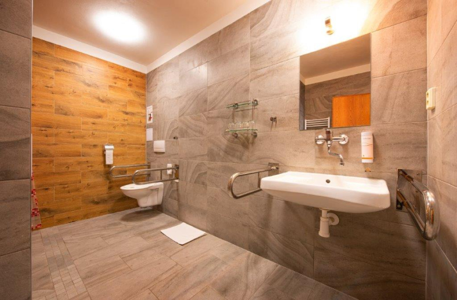 Špeciálne upravená izba pre hostí s obmedzenou schopnosťou pohybu ponúka priestrannú spálňovú časť. Využívaná aj ako rodinná izba, ktorá je určená pre 2 osoby s možnosťou 2 prísteliek. Detská postieľka na vyžiadanie.